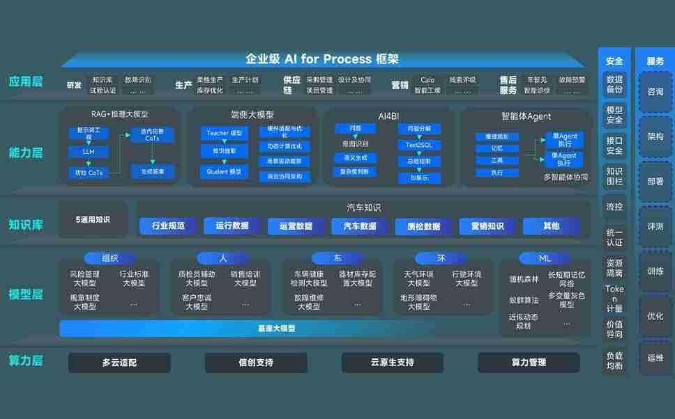 端到端的一站式AI工作空间深度融合了从企业战略规划到日常经营的全流程业务板块,,,,定向解决车企内部领域多、、部门多、、、、链条长、、、场景碎片化等难题,,支持车企快速构建以AI为核心的生产力写作体系,,实现任务执行与AI能力的无缝集成与交互