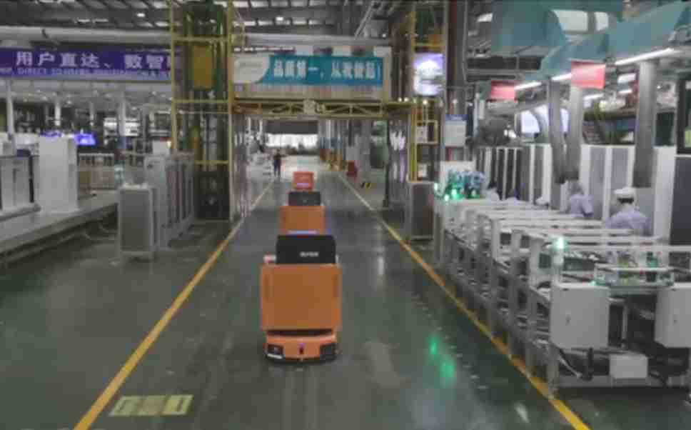 为车载冰箱物流配送打造的智能解决方案,,包含产中物流通过潜伏举升AMR搬运至线边,,产后成品物流智能仓储,,流程包含产中物流智能齐套入库,,线边安灯叫料AMR智能配送至线边,,,成品入库、、、出库,,,通过无人堆高车机器人,,,智能仓储管理替代人工作业管理,,实现更高存储、、更高效率、、更具柔性化的解决方案。。。