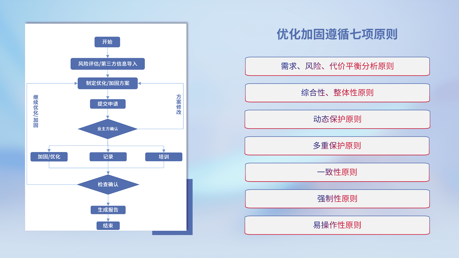 最大程度利用现有资产,,,,对评估发现的问题进行封堵与整改,,,,防止漏洞被利用,,,提升整体网络安全性,,,为客户带来高标准的优化加固服务。。